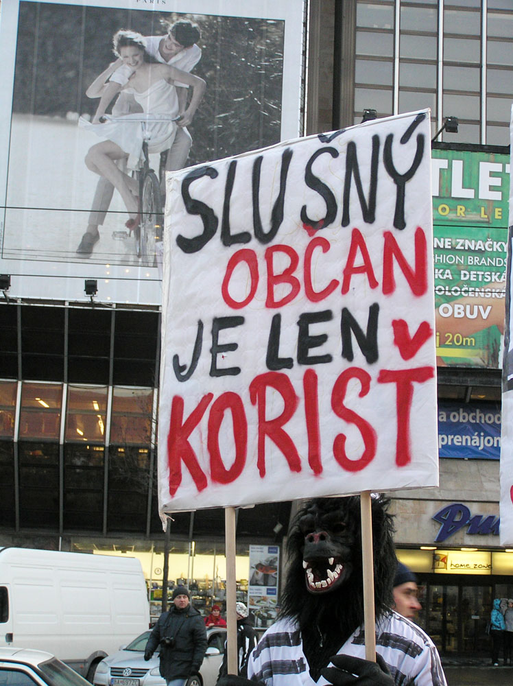 Protesty Antigorila, ktoré sa konali od začiatku roka 2012 boli okrem iného nepochybne zaujímavé aj pre sociológov, politológov, správy o jednotlivých udalostiach a komentáre plnili médiá. A téma ako vyšitá je to samozrejme aj pre filmových dokumentaristov. Takých, ktorí sa vo svojej tvorbe hlbšie zaujímajú aj o spoločenské súvislosti súčasnosti a nepovažujú dokument za výlučné teritórium napríklad pre portréty význačných a zaslúžených osobností, či artificiálne autorské výpovede alebo intelektuálne hry a prešpekulované metaforické konštrukcie. Gorila a udalosti, ktoré spôsobila, sú vďačnou, aj keď určite neľahkou témou pre silný dokument o našej súčasnosti. Predpokladá tvorcu, ktorý je ochotný a schopný nielen zaznamenať dianie, ale priniesť aj jeho podnetnú, jedinečnú – takpovediac tvorivú interpretáciu – užijúc s prepáčením Griersonove slová. Nuž filmárov vnímavých k spoločenským kontextom v tejto krajine veľa nemáme, intenzívne sa o tieto otázky opakovane, hádam ako jediný slovenský dokumentarista, zaujíma Zuzana Piussi. Jej angažovanosť v pálčivých spoločenských témach a otázkach je najmä v poslednom období mimoriadna a určite je záslužná, možno až obdivuhodná. S kvalitou tvorivej interpretácie je to však už tradične zložitejšie...